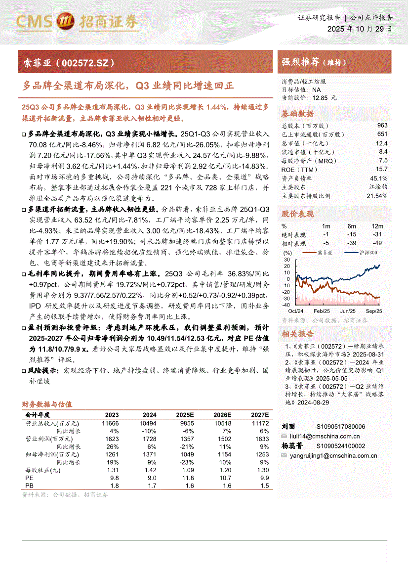 索菲亚:招商证券-索菲亚-002572-多品牌全渠道布局深化,Q3业绩同比增速回正-251029