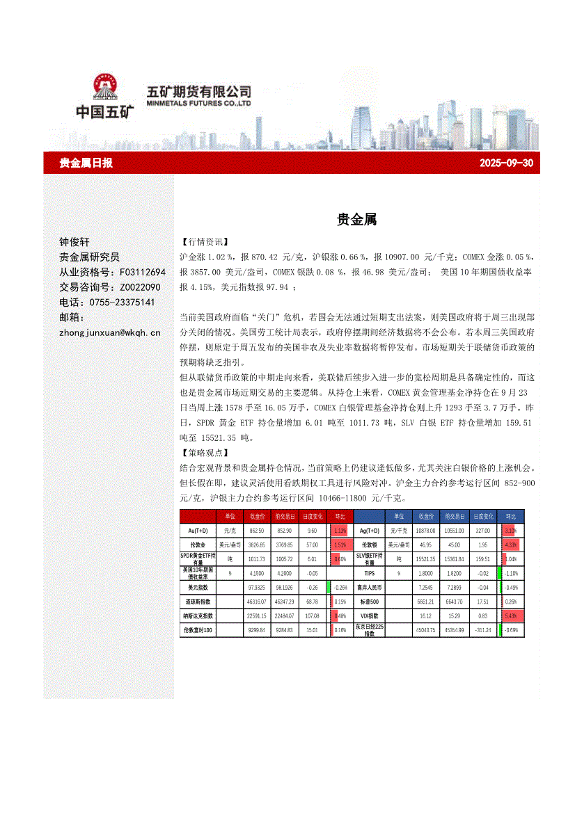 五矿期货-贵金属周报:美联储降息周期开启,贵金属价格将持续走强-250920