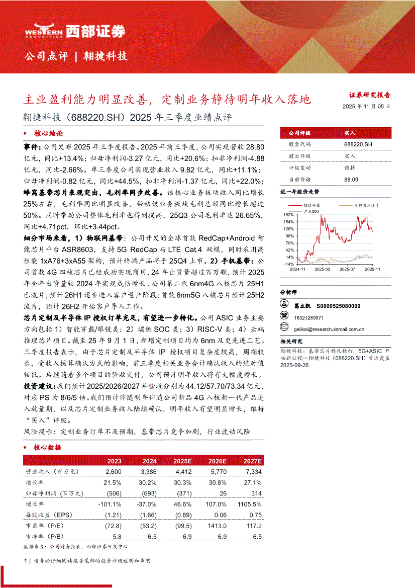 翱捷科技:西部证券-翱捷科技-688220-2025年三季度业绩点评:主业盈利能力明显改善,定制业务静待明年收入落地-251105