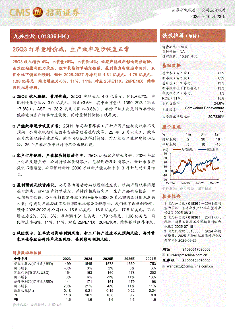 九兴控股:招商证券-九兴控股-1836.HK-25Q3订单量增价减,生产效率逐步恢复正常-251023