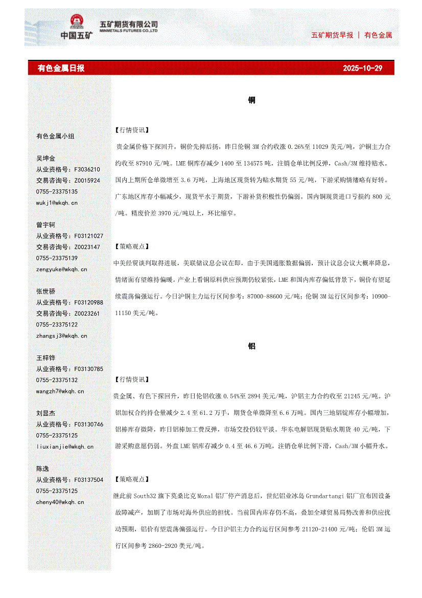 五矿期货-铜周报:宏观事件落地,铜价冲高回落-251101