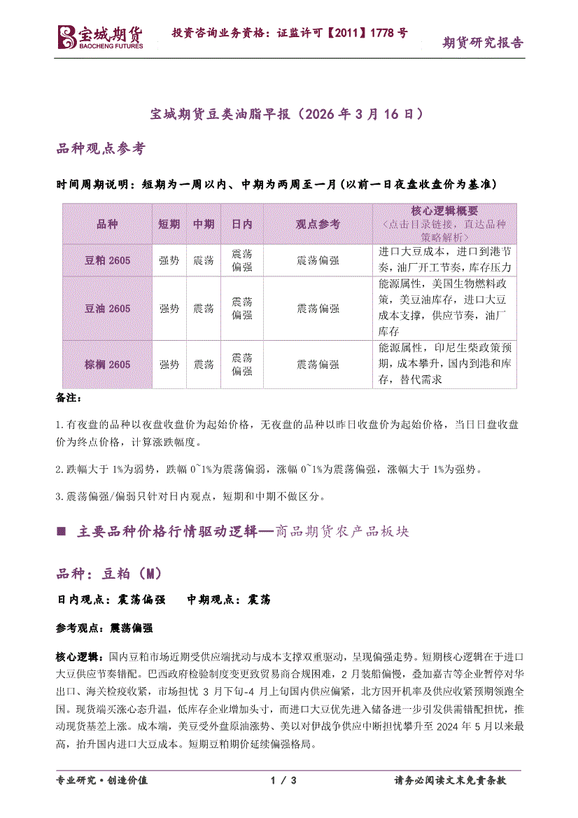 宝城期货-豆类油脂早报-260316