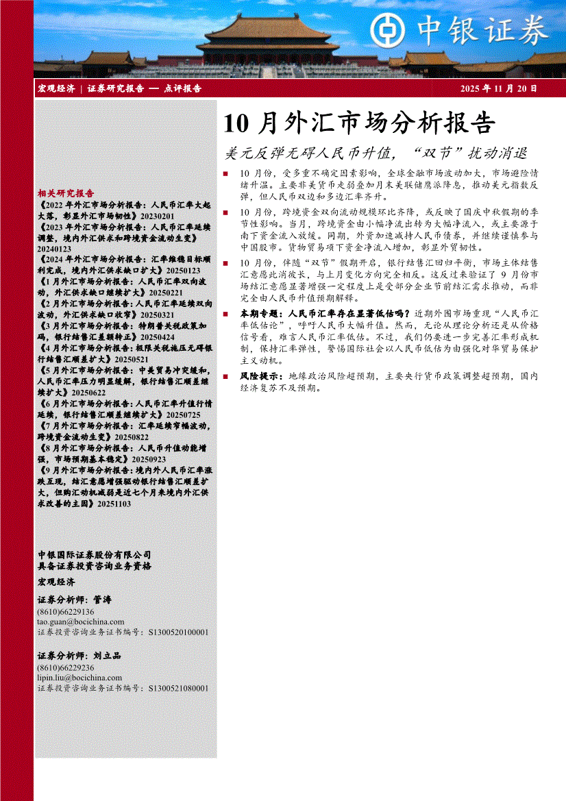 中银国际-10月外汇市场分析报告:美元反弹无碍人民币升值,“双节”扰动消退-251120