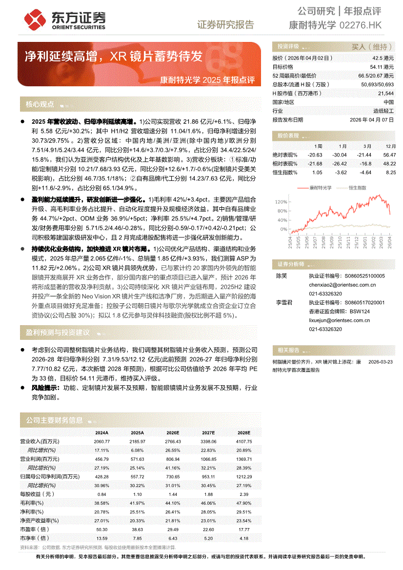 康耐特光学:东方证券-康耐特光学-2276.HK-2025年报点评:净利延续高增,XR镜片蓄势待发-260407