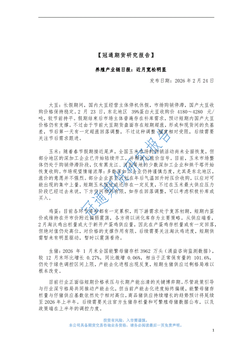 冠通期货-养殖产业链日报:近月宽松明显-260224