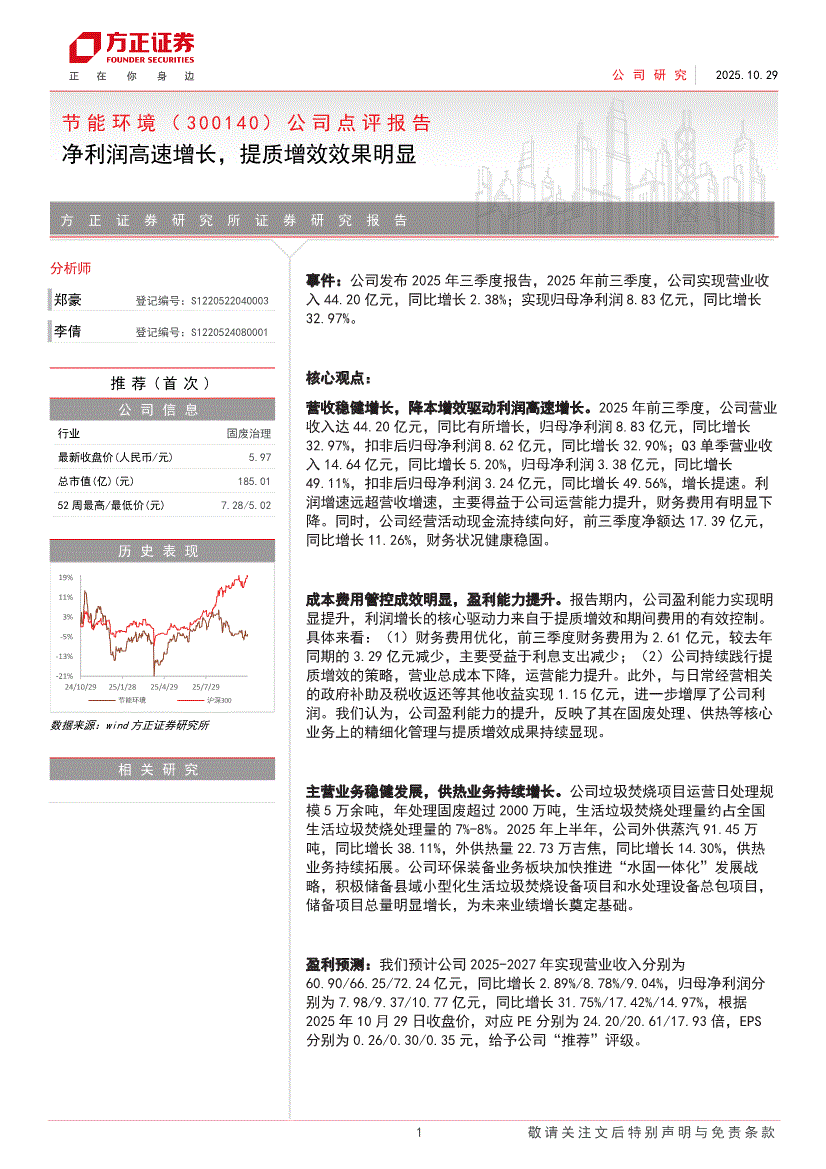 节能环境:方正证券-节能环境-300140-公司点评报告:净利润高速增长,提质增效效果明显-251029