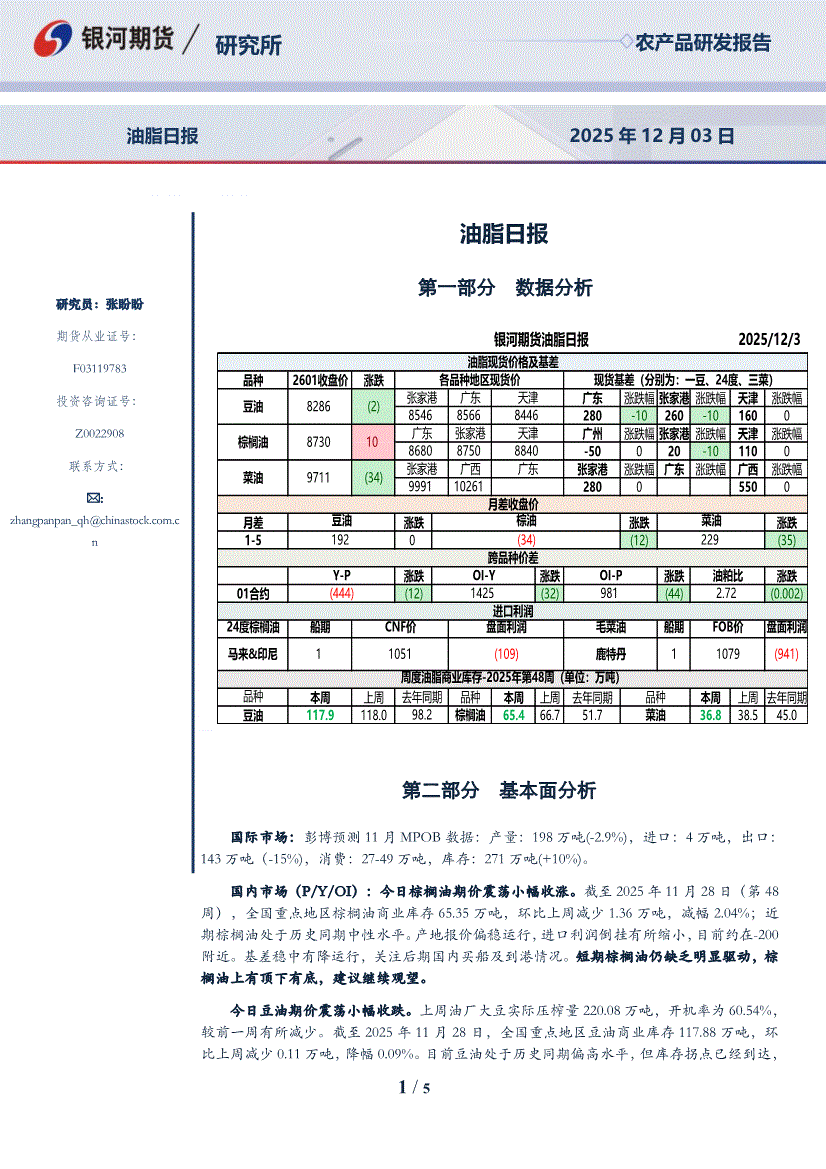 银河期货-油脂12月报:油脂缺乏利多驱动,短期或继续底部震荡-251128