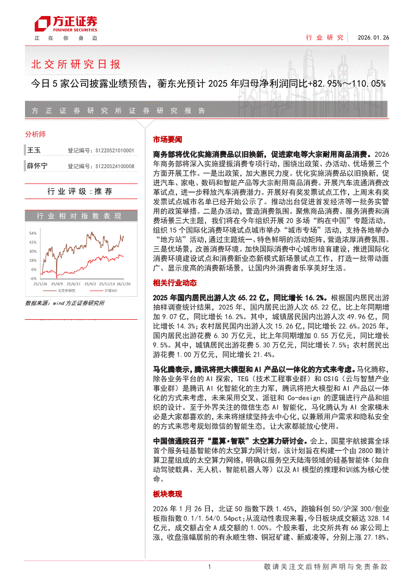 方正证券-北交所研究日报:今日5家公司披露业绩预告,蘅东光预计2025年归母净利润同比+82.95%~110.05%-260126