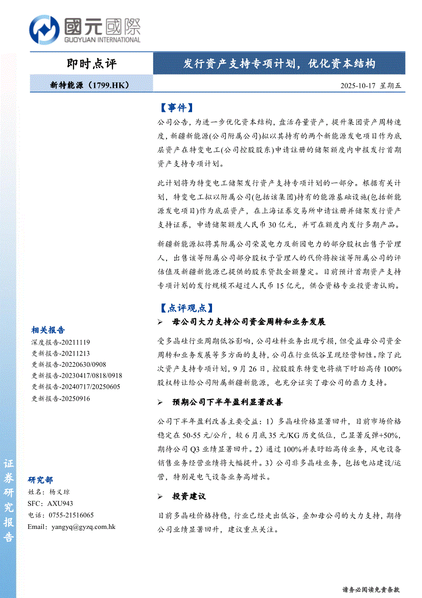 新特能源:国元国际-新特能源-1799.HK-发行资产支持专项计划,优化资本结构-251017