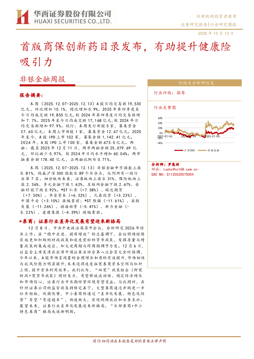 非银金融行业:华西证券-非银金融行业周报:首版商保创新药目录发布,有助提升健康险吸引力-251213