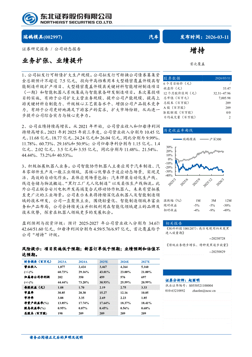 瑞鹄模具:东北证券-瑞鹄模具-002997-业务扩张、业绩提升-260311