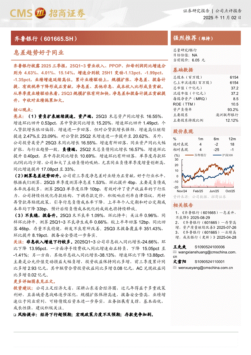齐鲁银行:招商证券-齐鲁银行-601665-息差趋势好于同业-251102