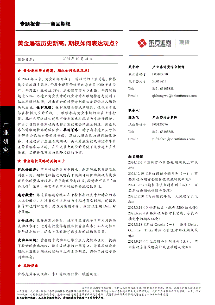 东证期货-商品期权专题报告:黄金屡破历史新高,期权如何表达观点?-251021