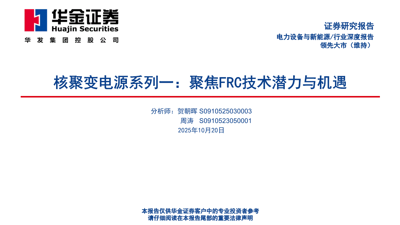 电力设备与新能源行业:华金证券-电力设备与新能源行业核聚变电源系列一:聚焦FRC技术潜力与机遇-251020