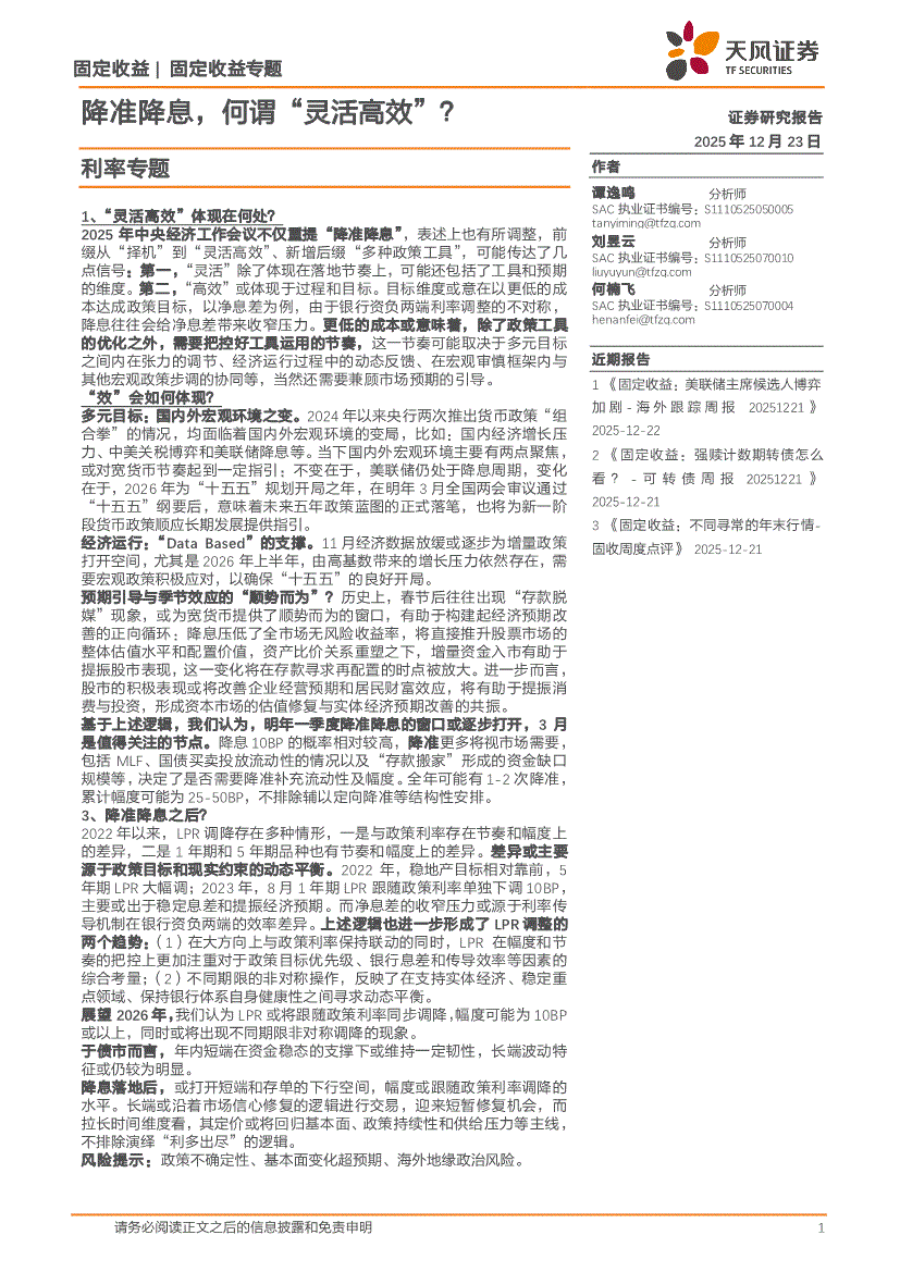 天风证券-利率专题:降准降息,何谓“灵活高效”?-251223