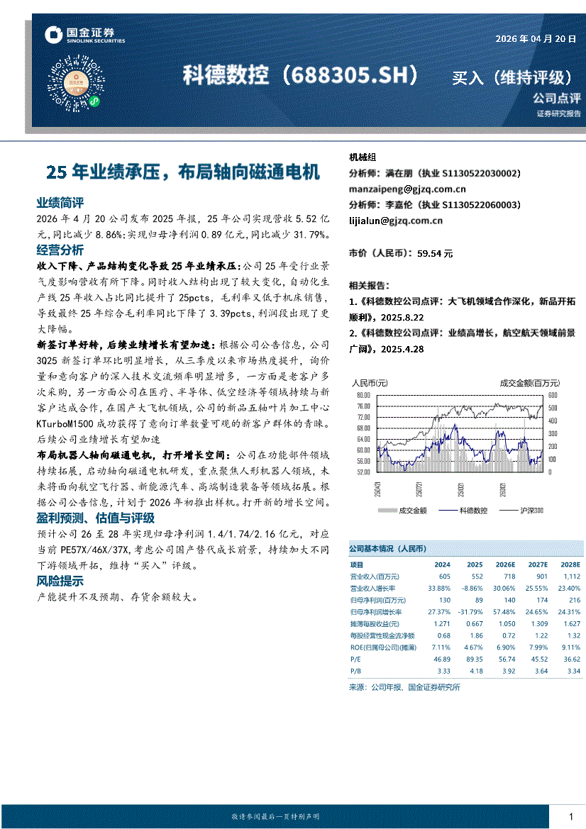 科德数控:国金证券-科德数控-688305-25年业绩承压,布局轴向磁通电机-260420