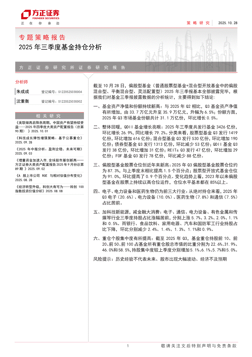 方正证券-专题策略报告:2025年三季度基金持仓分析-251028