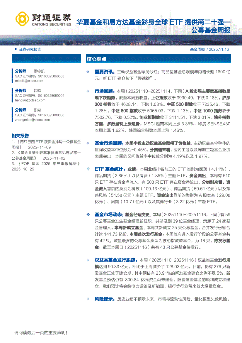 财通证券-华夏基金和易方达基金跻身全球ETF提供商二十强—公募基金周报-251116