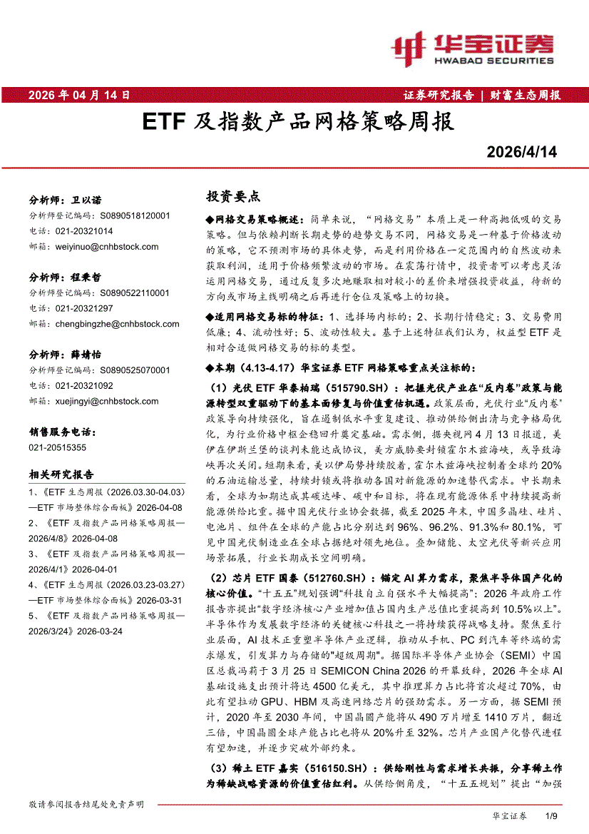 华宝证券-ETF及指数产品网格策略周报-260414