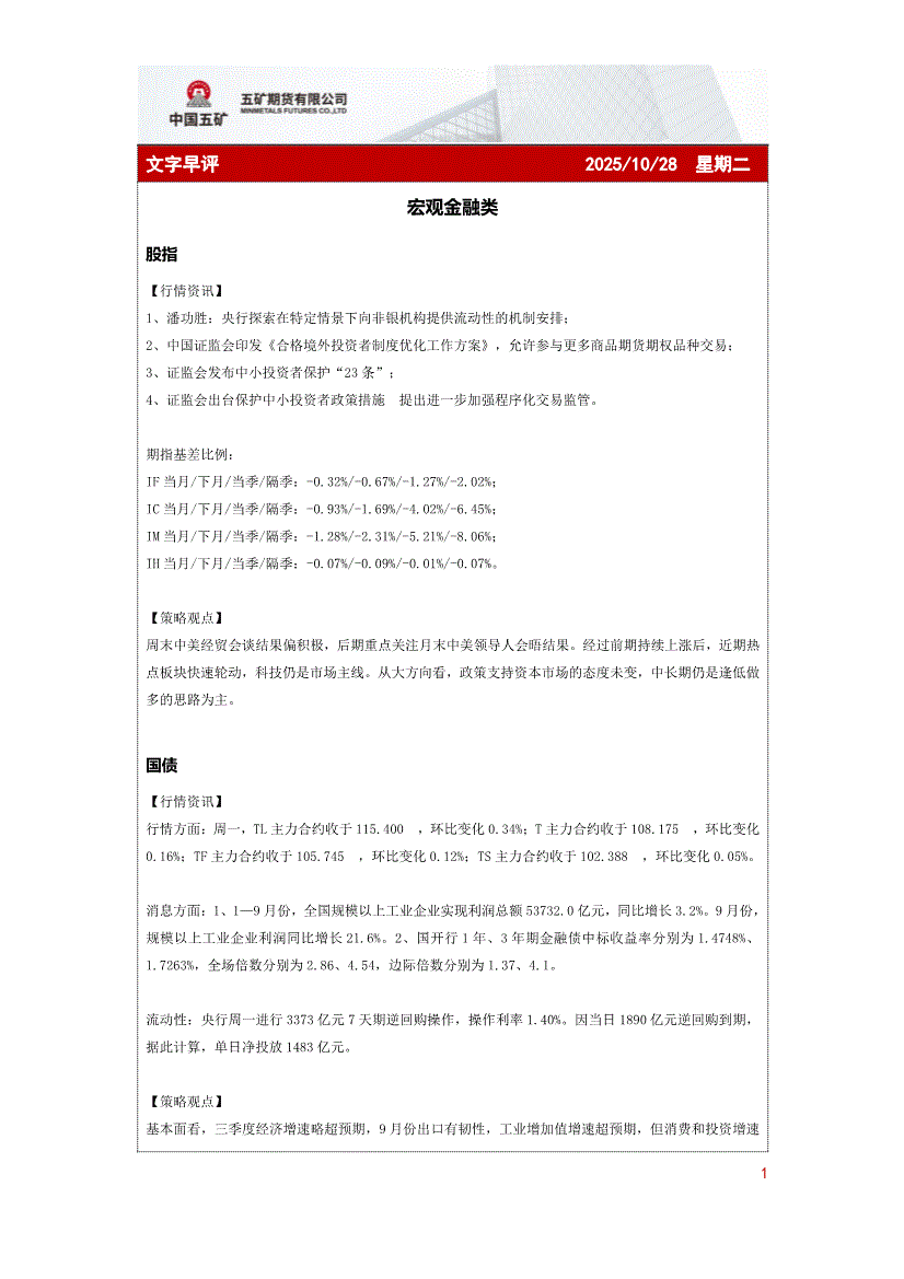 五矿期货-文字早评-251028