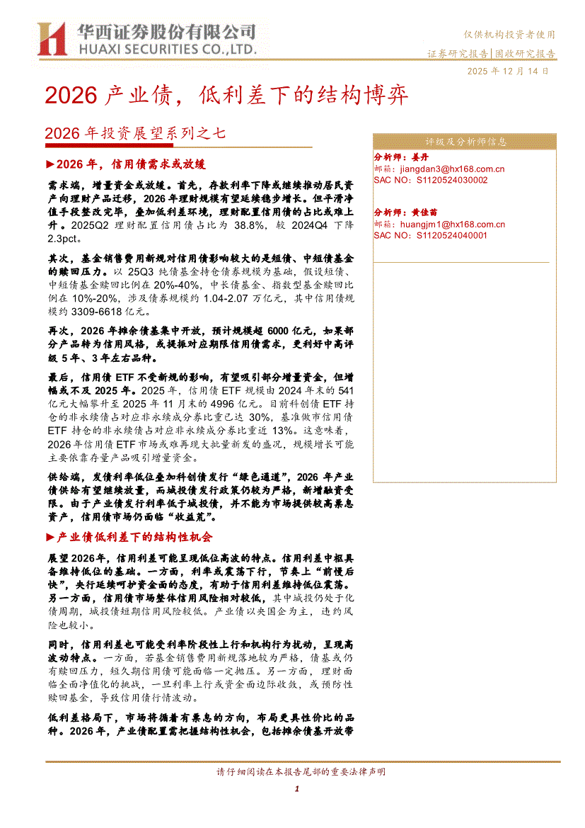 华西证券-2026年投资展望系列之七:2026产业债,低利差下的结构博弈-251214