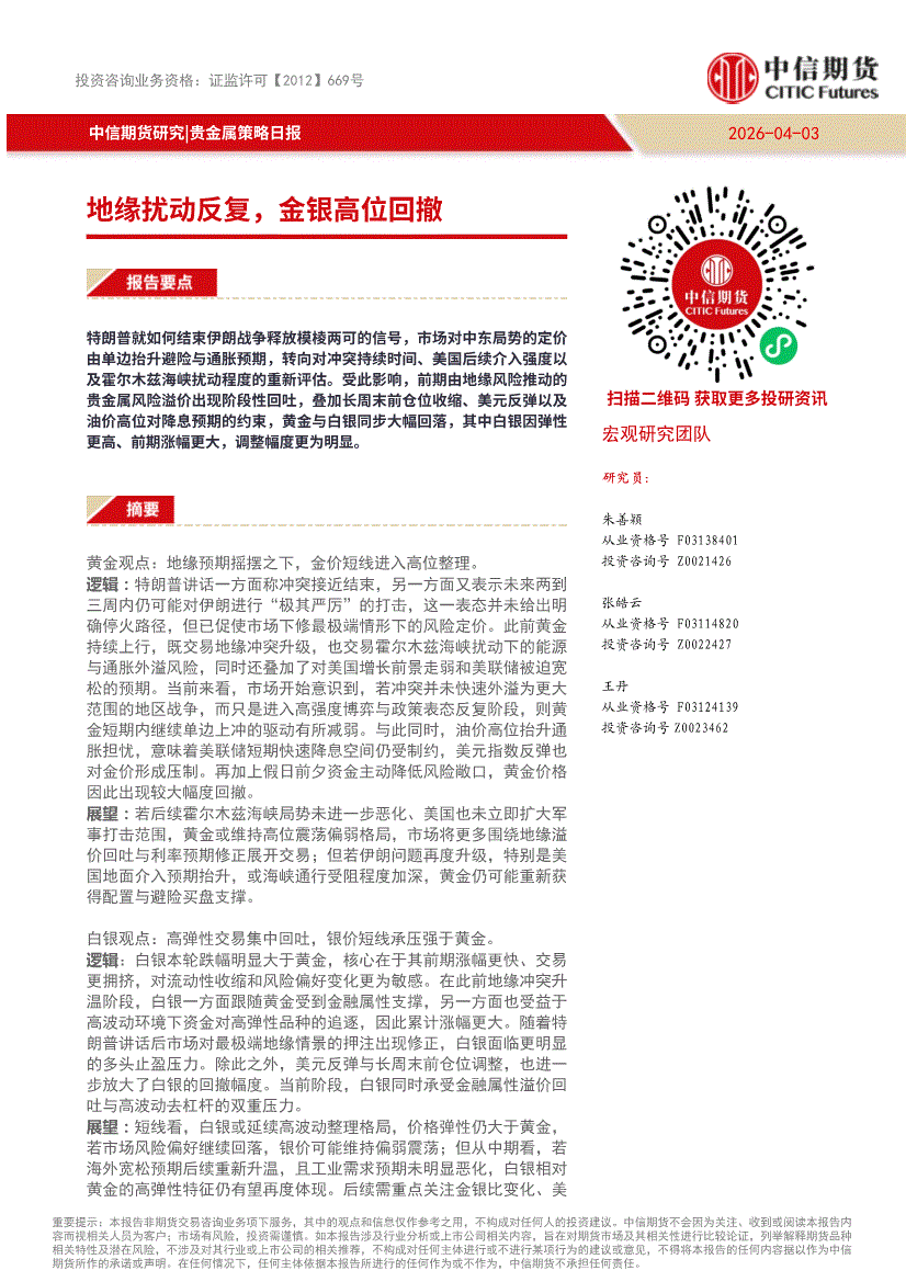 中信期货-贵金属策略日报:避险需求回摆与宽松预期交织,金强银弱-260402