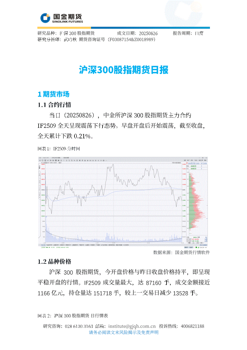 国金期货-沪深300股指期货日报-250826