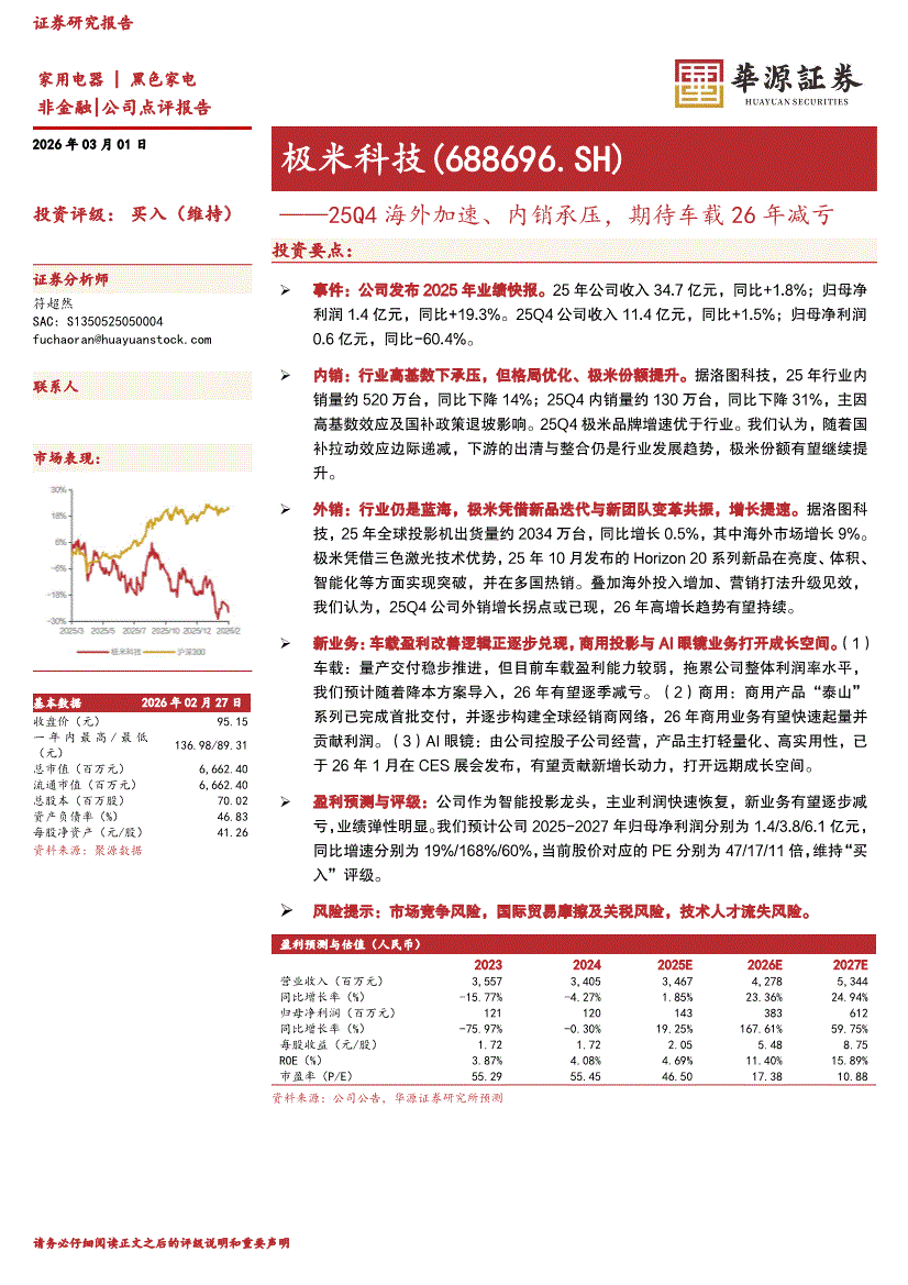 极米科技:华源证券-极米科技-688696-25Q4海外加速、内销承压,期待车载26年减亏-260301
