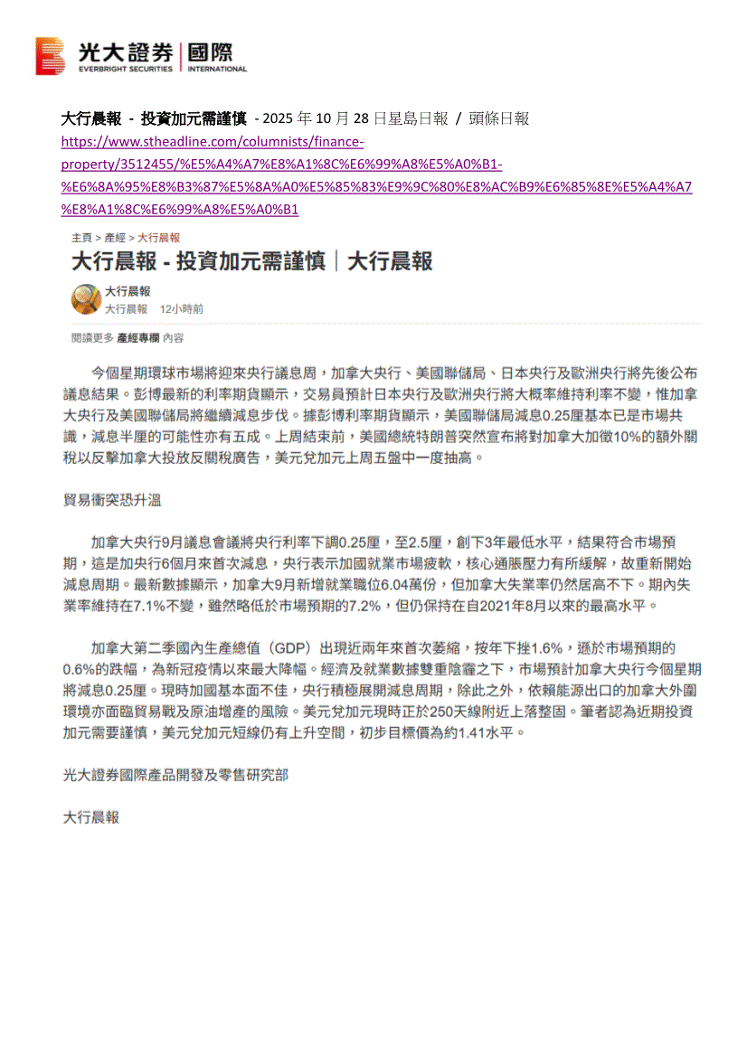 光大证券(国际)-大行晨报:投资加元需谨慎-251028