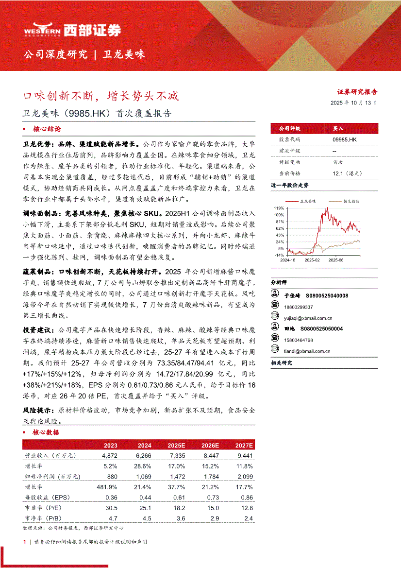 卫龙美味:西部证券-卫龙美味-9985.HK-首次覆盖报告:口味创新不断,增长势头不减-251013