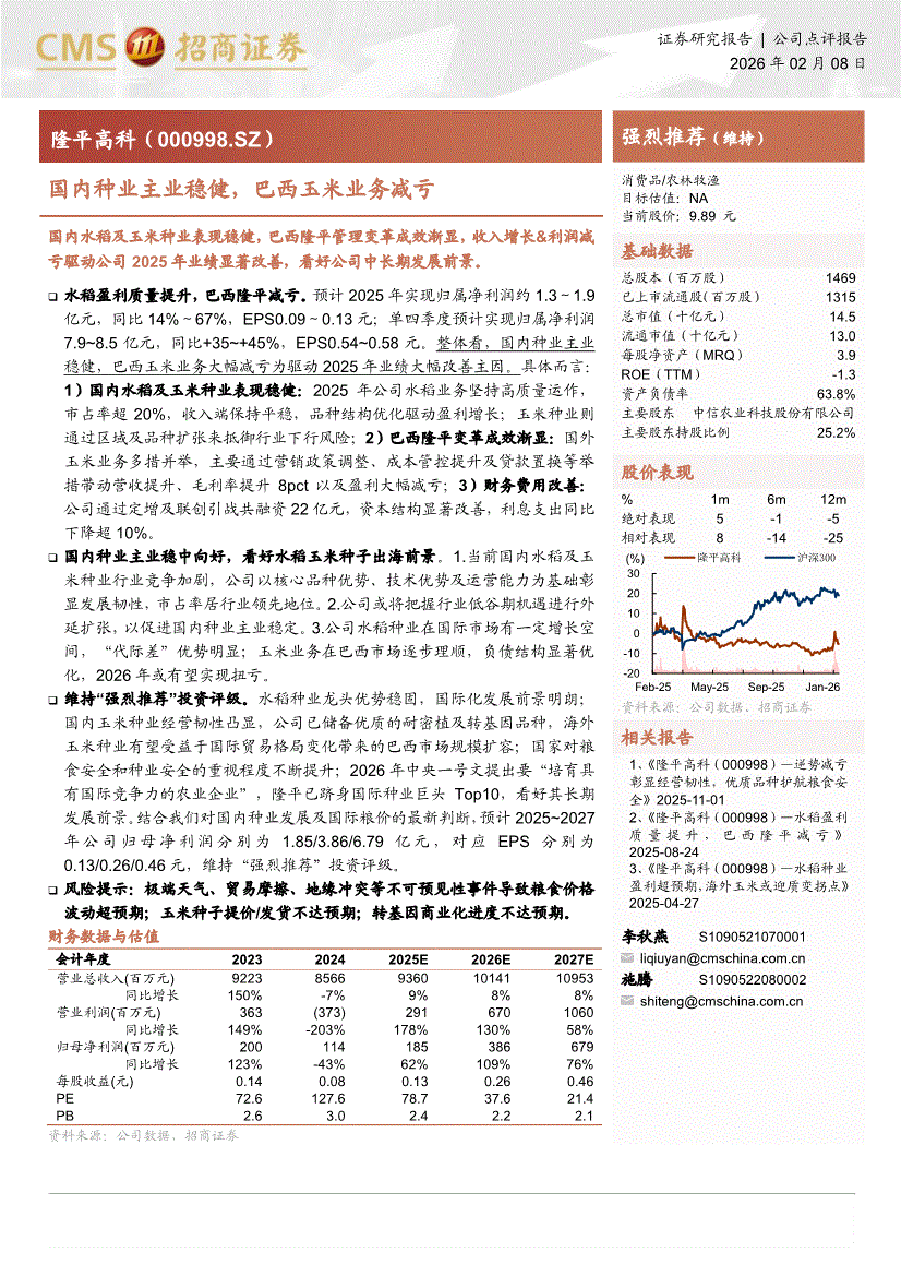 隆平高科:招商证券-隆平高科-000998-国内种业主业稳健,巴西玉米业务减亏-260208