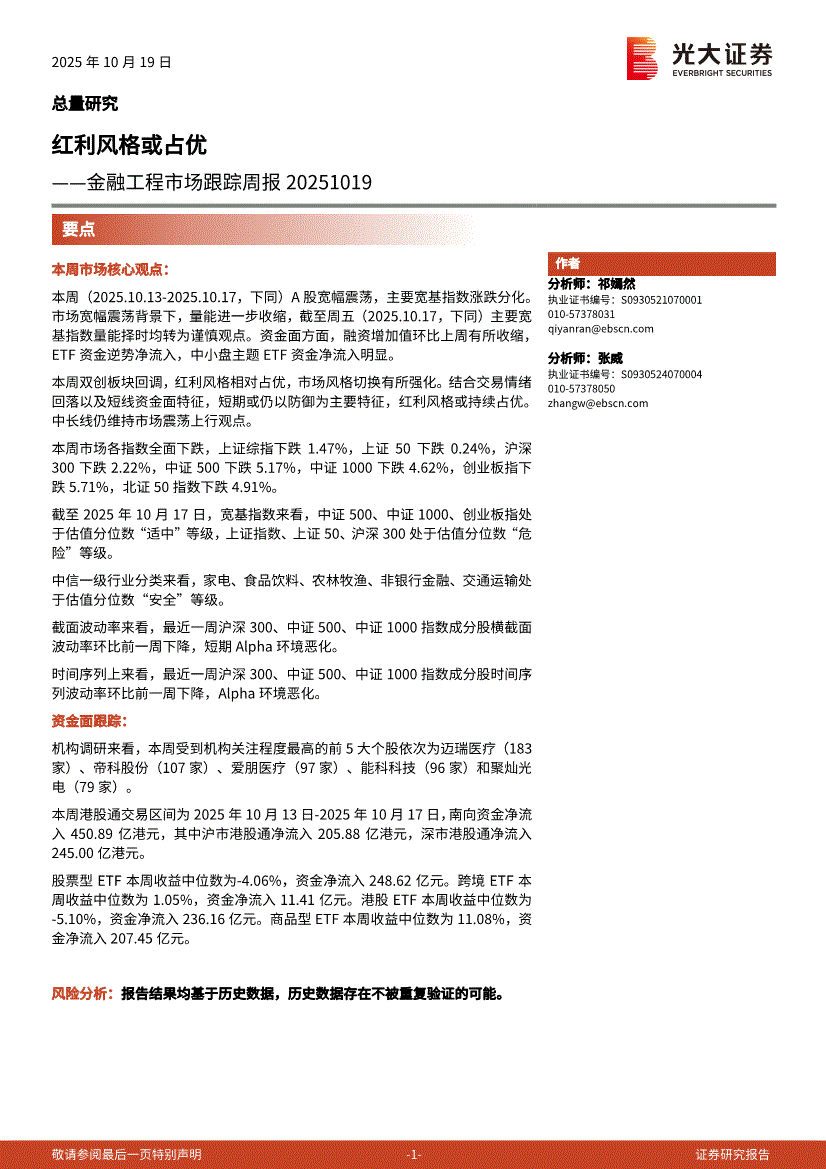 光大证券-金融工程市场跟踪周报:红利风格或占优-251019
