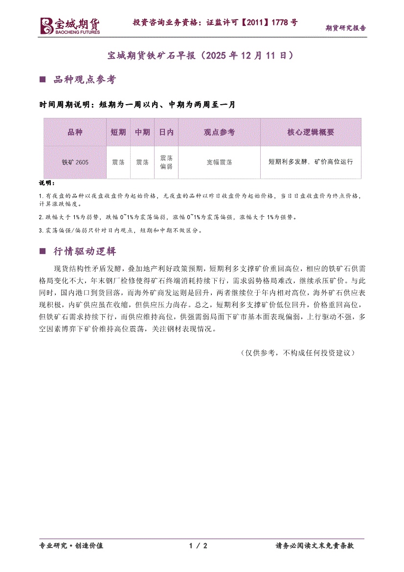 宝城期货-钢材&铁矿石日报:市场情绪转弱,钢矿震荡回落-251211