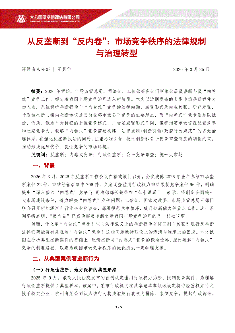 大公国际-从反垄断到“反内卷”:市场竞争秩序的法律规制与治理转型-260326