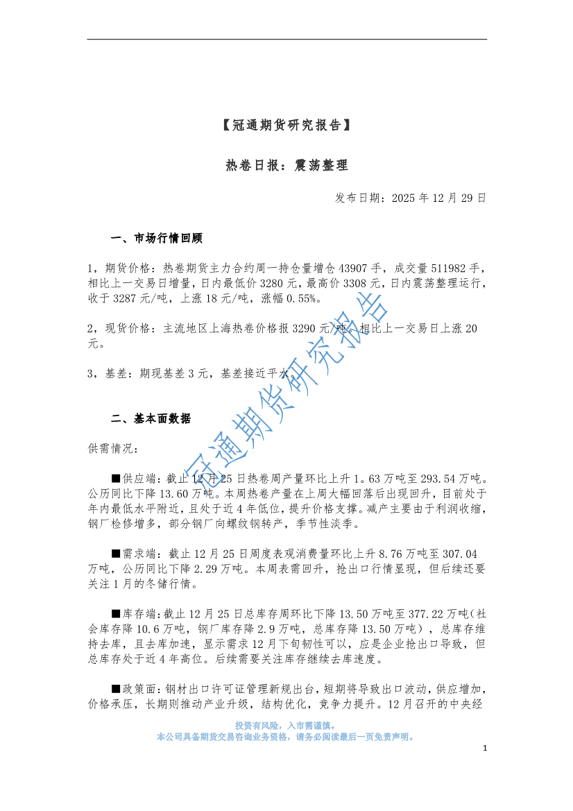 冠通期货-热卷日报:成交缩量窄幅震荡-251217