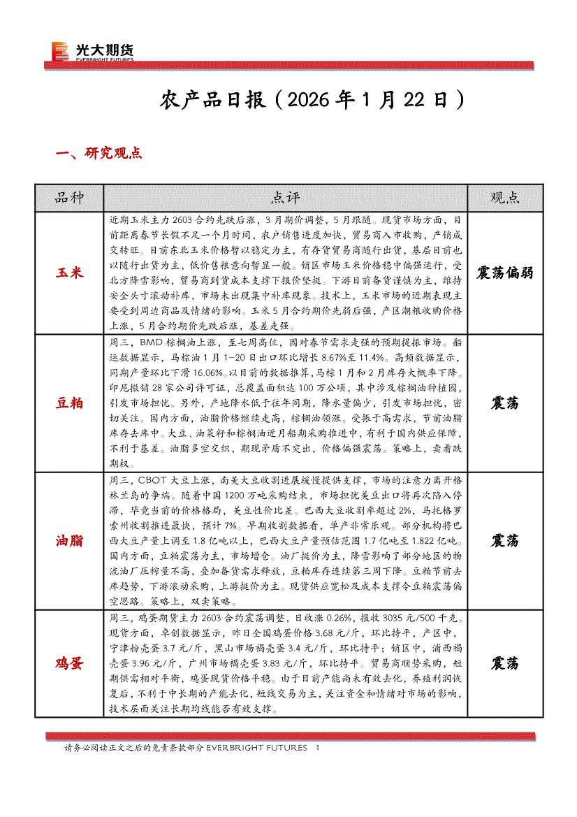 光大期货-光期农产品:玉米、淀粉周报-260119