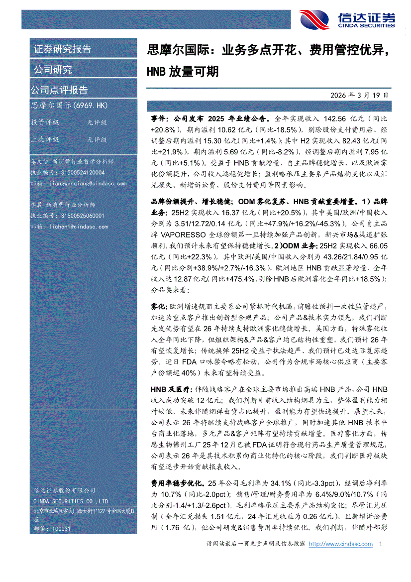 思摩尔国际:信达证券-思摩尔国际-6969.HK-业务多点开花、费用管控优异,HNB放量可期-260319