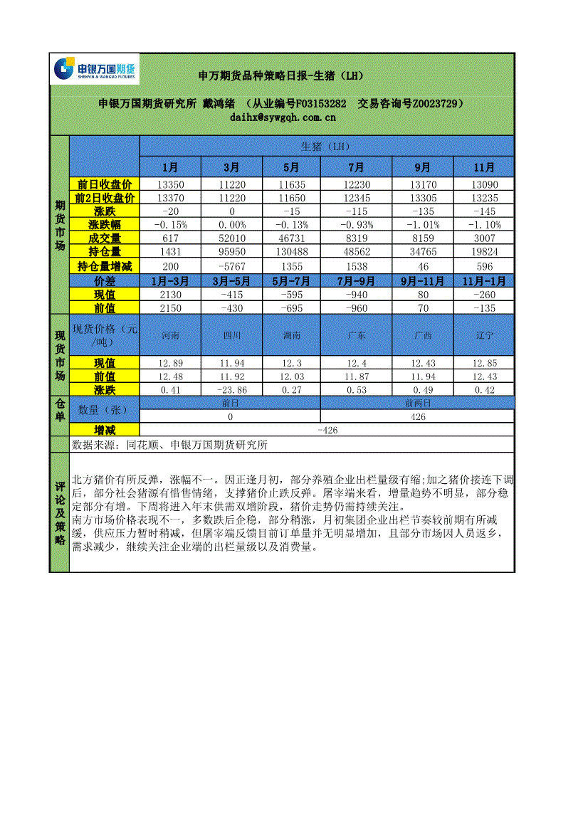 申银万国期货-品种策略日报~生猪(LH)-260203
