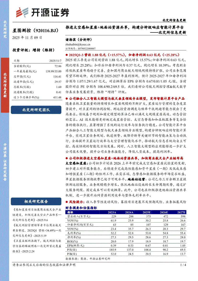 星图测控:开源证券-星图测控-920116-北交所信息更新:推进太空感知星座+地面站资源共享,构建分钟级响应智能计算平台-251109