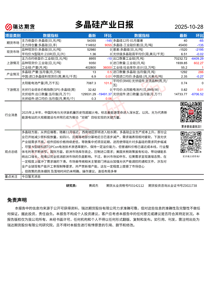 瑞达期货-多晶硅产业日报-251020
