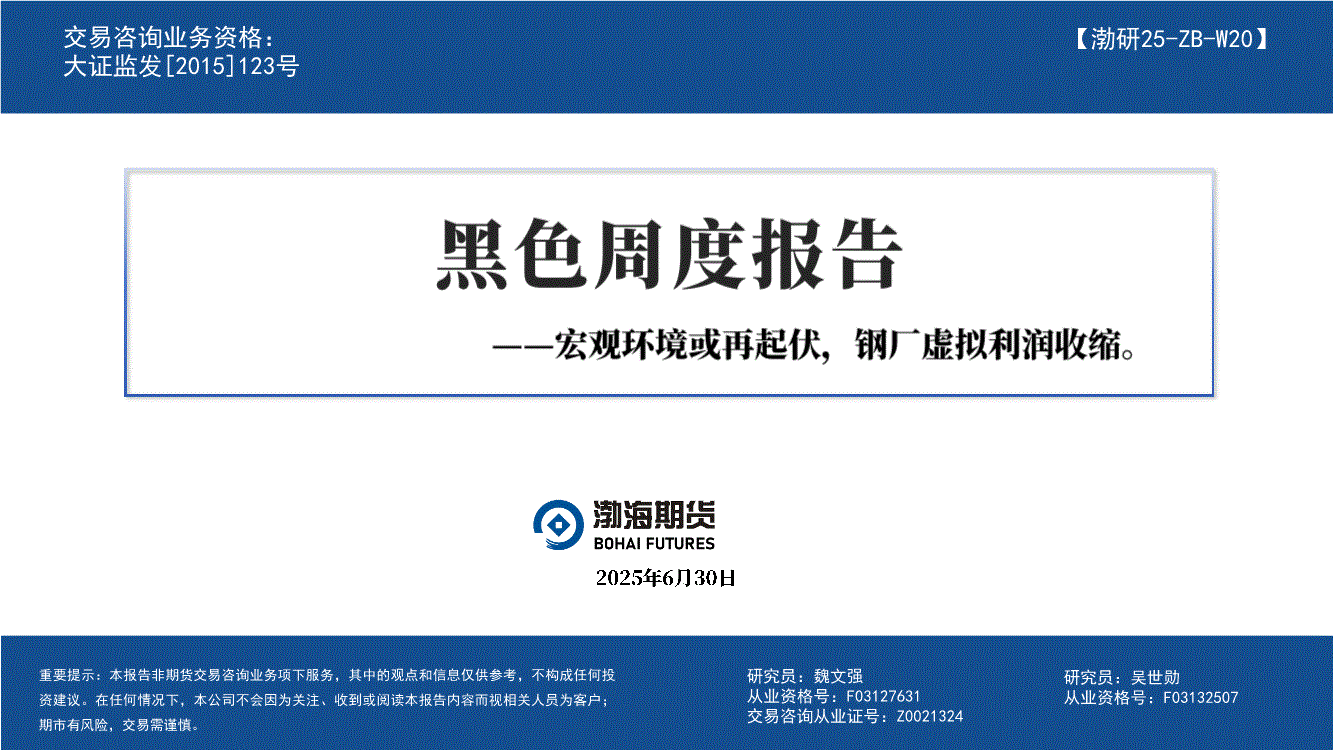渤海期货-黑色周度报告:宏观环境或再起伏,钢厂虚拟利润收缩-250630