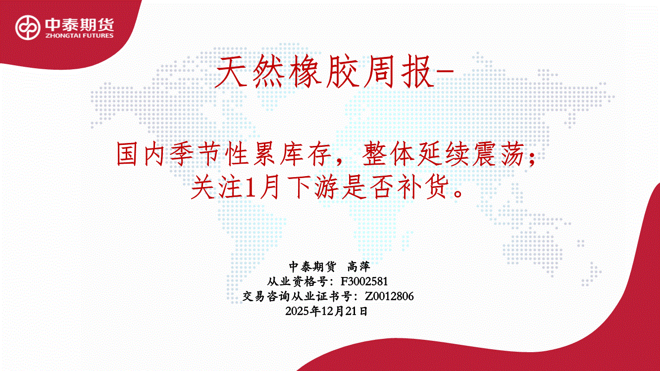 中泰期货-天然橡胶周报:国内季节性累库存,整体延续震荡;关注1月下游是否补货-251221