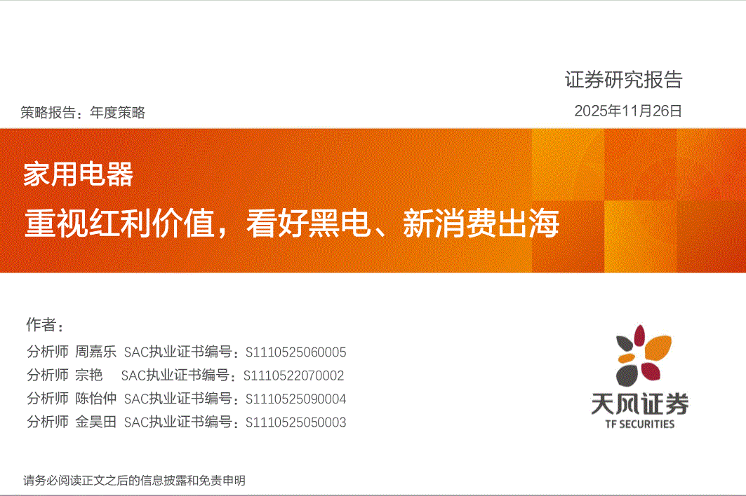 家用电器行业:天风证券-家用电器行业:重视红利价值,看好黑电、新消费出海-251126