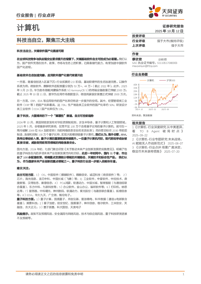 计算机行业:天风证券-计算机行业:科技当自立,聚焦三大主线-251012