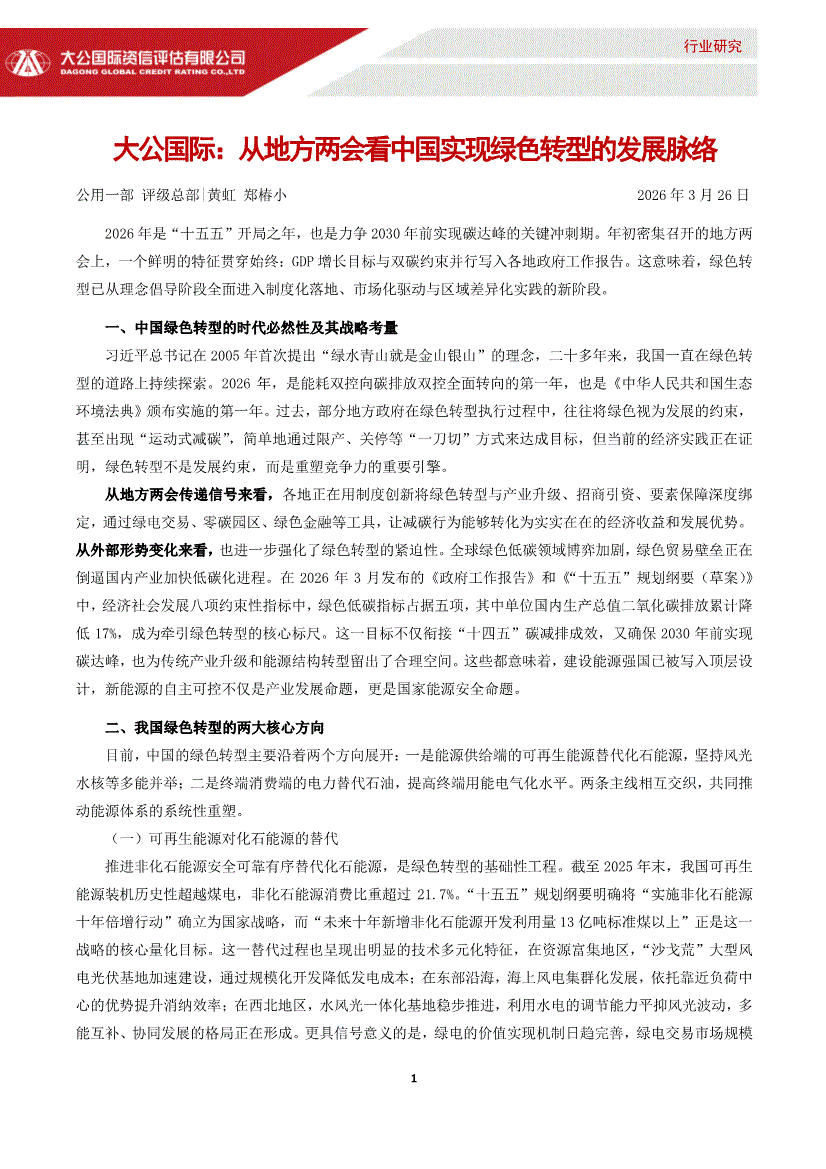 大公国际-从地方两会看中国实现绿色转型的发展脉络-260326