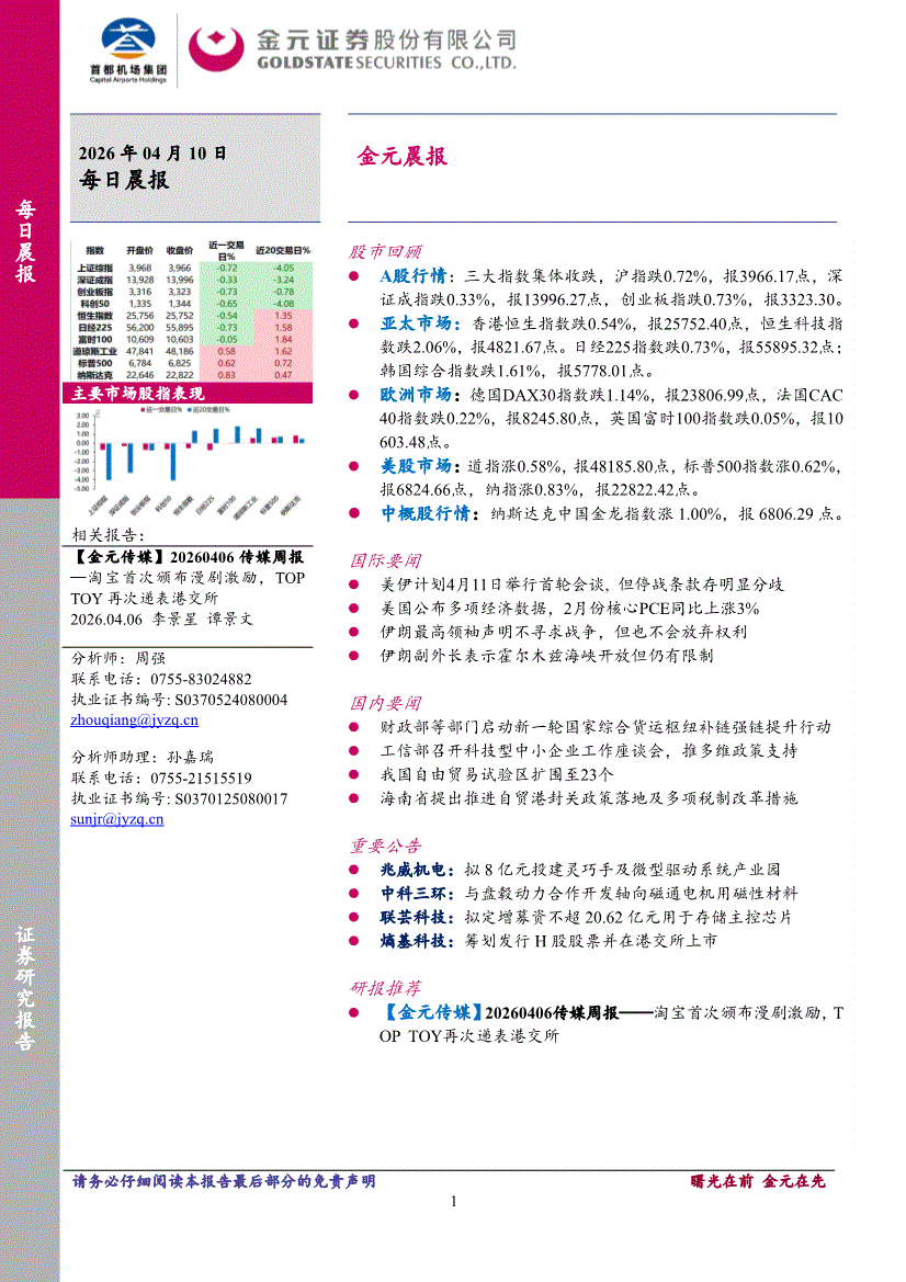 金元证券-晨报-260410