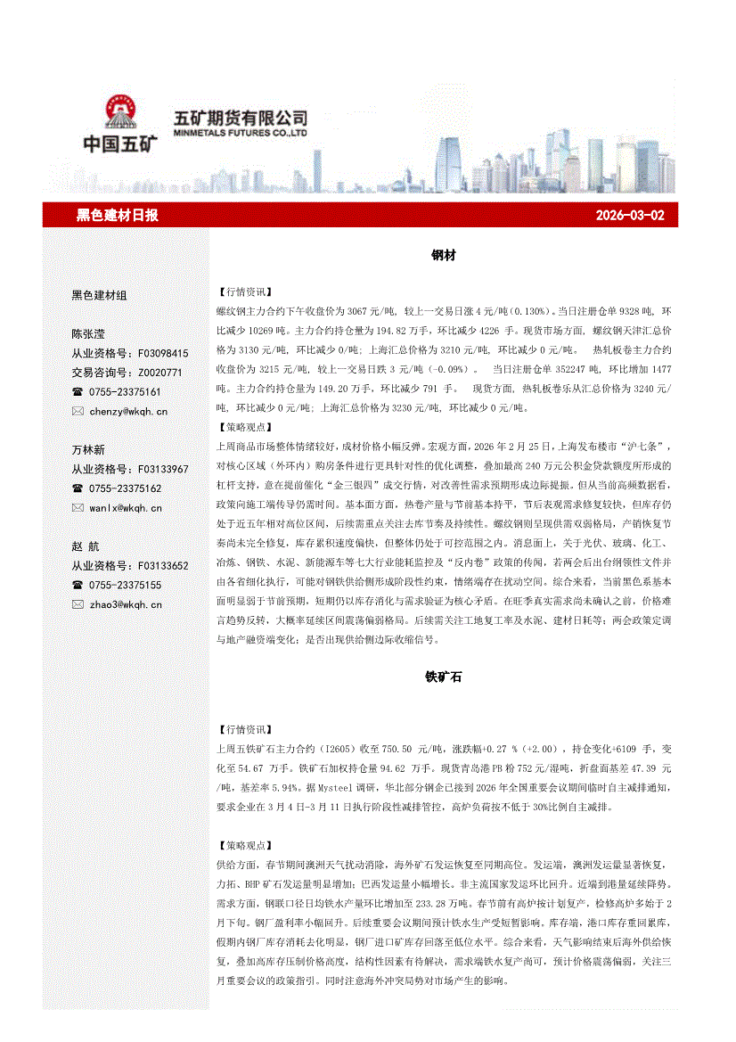 五矿期货-铁矿石周报:价格偏弱,关注重要会议政策指引-260228