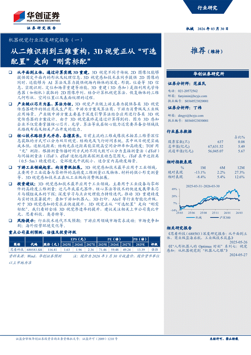 机器视觉行业:华创证券-机器视觉行业深度研究报告(一):从二维识别到三维重构,3D视觉正从“可选配置”走向“刚需标配”-260330