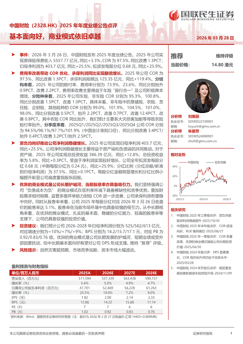 中国财险:国联民生证券-中国财险-2328.HK-25年年度业绩公告点评:基本面向好,商业模式依旧卓越-260328