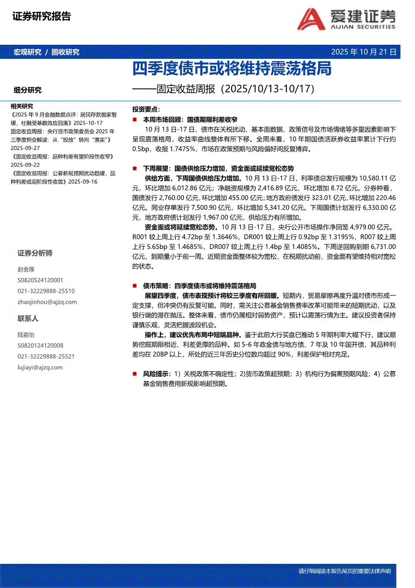 爱建证券-固定收益周报:四季度债市或将维持震荡格局-251021